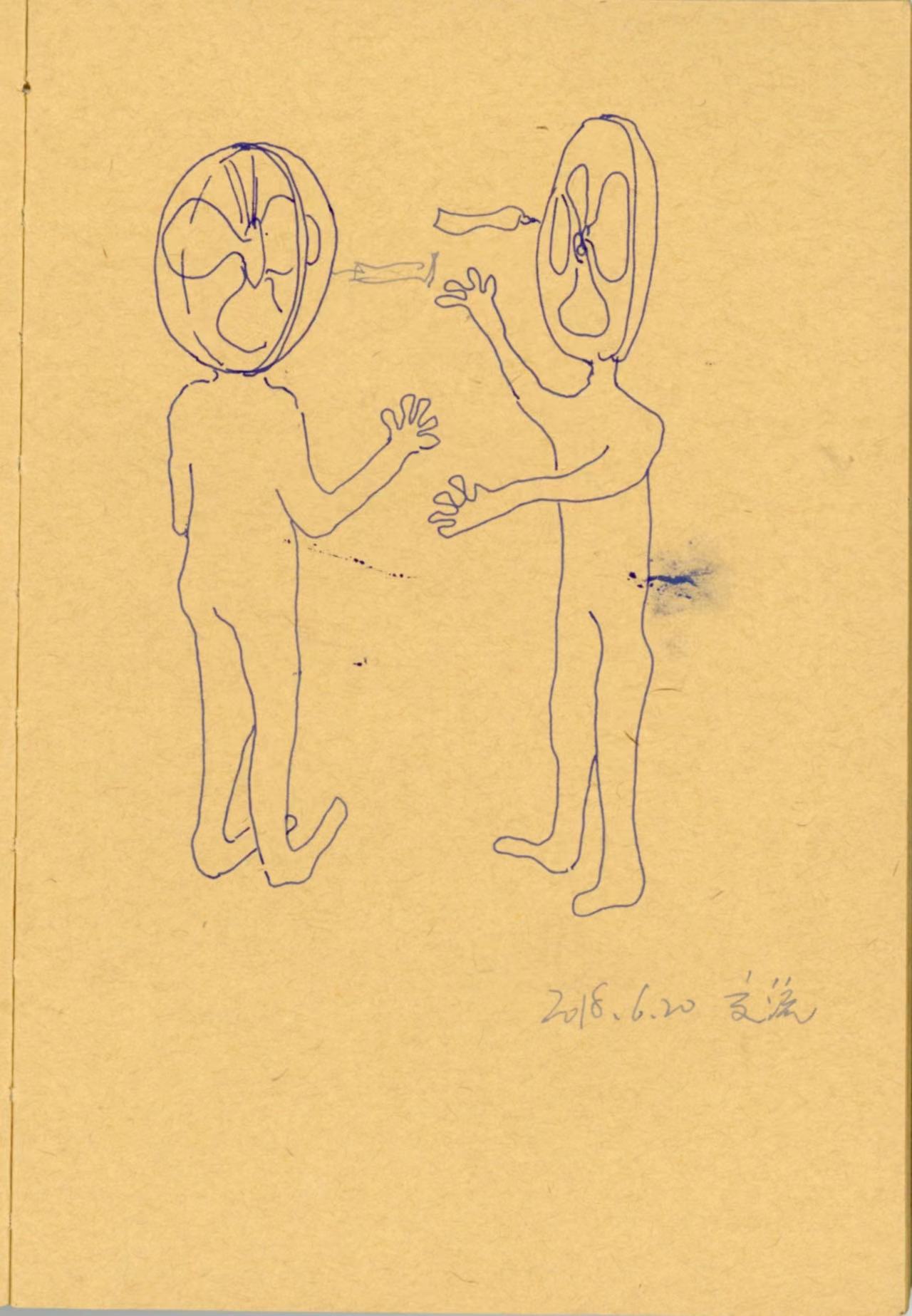 In an outdoor sketch in 2018, I drew many characters on this kraft paper sketch book, from which I accidentally extracted a bald image with glasses.
