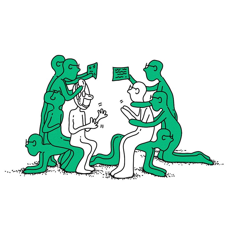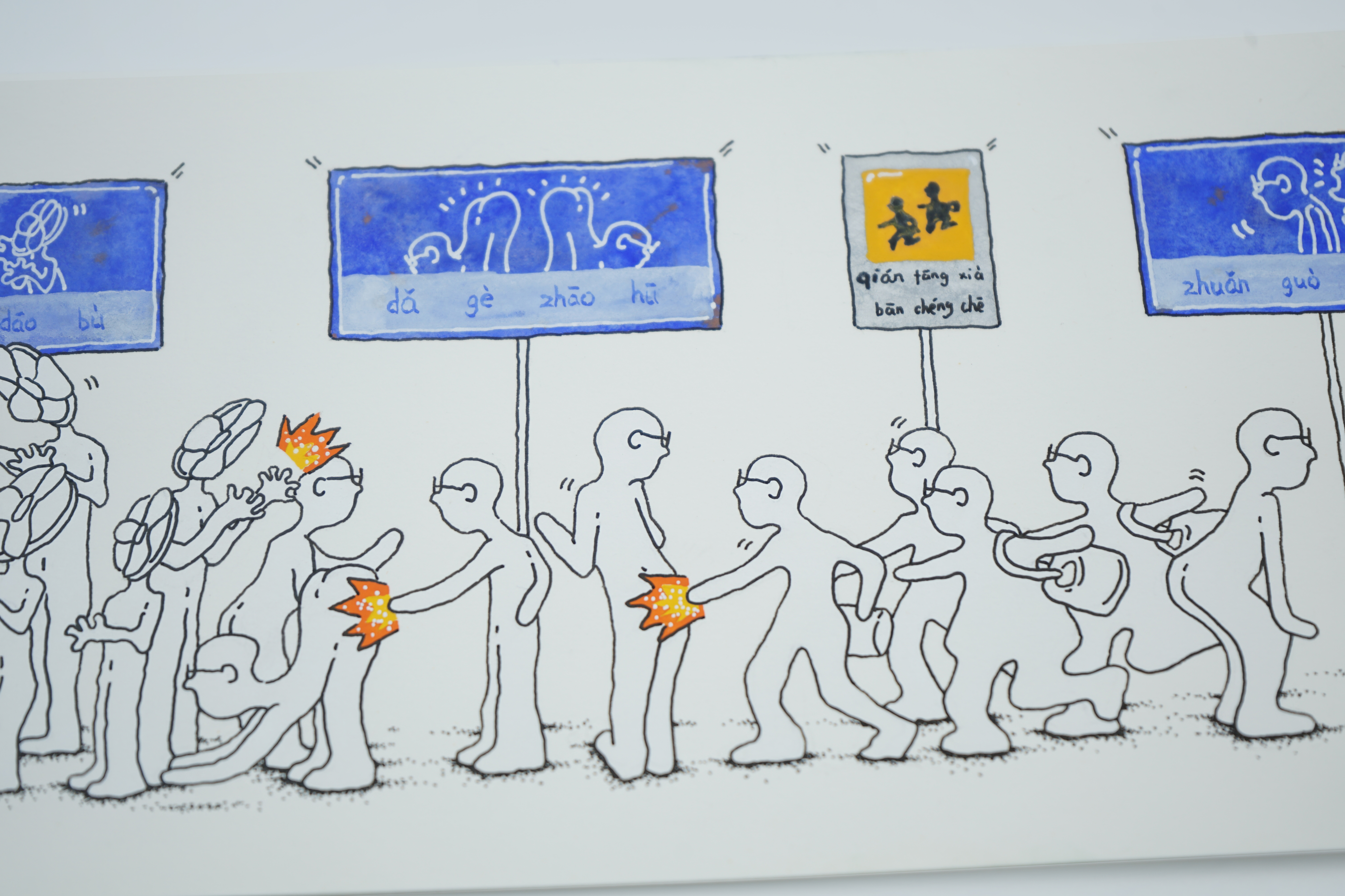 1023漫画,以个人创作的小人形象为所有作品的基础元素,于2018年创作至今,用日记的方式表达个人想法,漫画内容包含对当下人与人、人与环境、人与城市等境况的反思,以及日常生活的记录,漫画形式多为单张与组图。