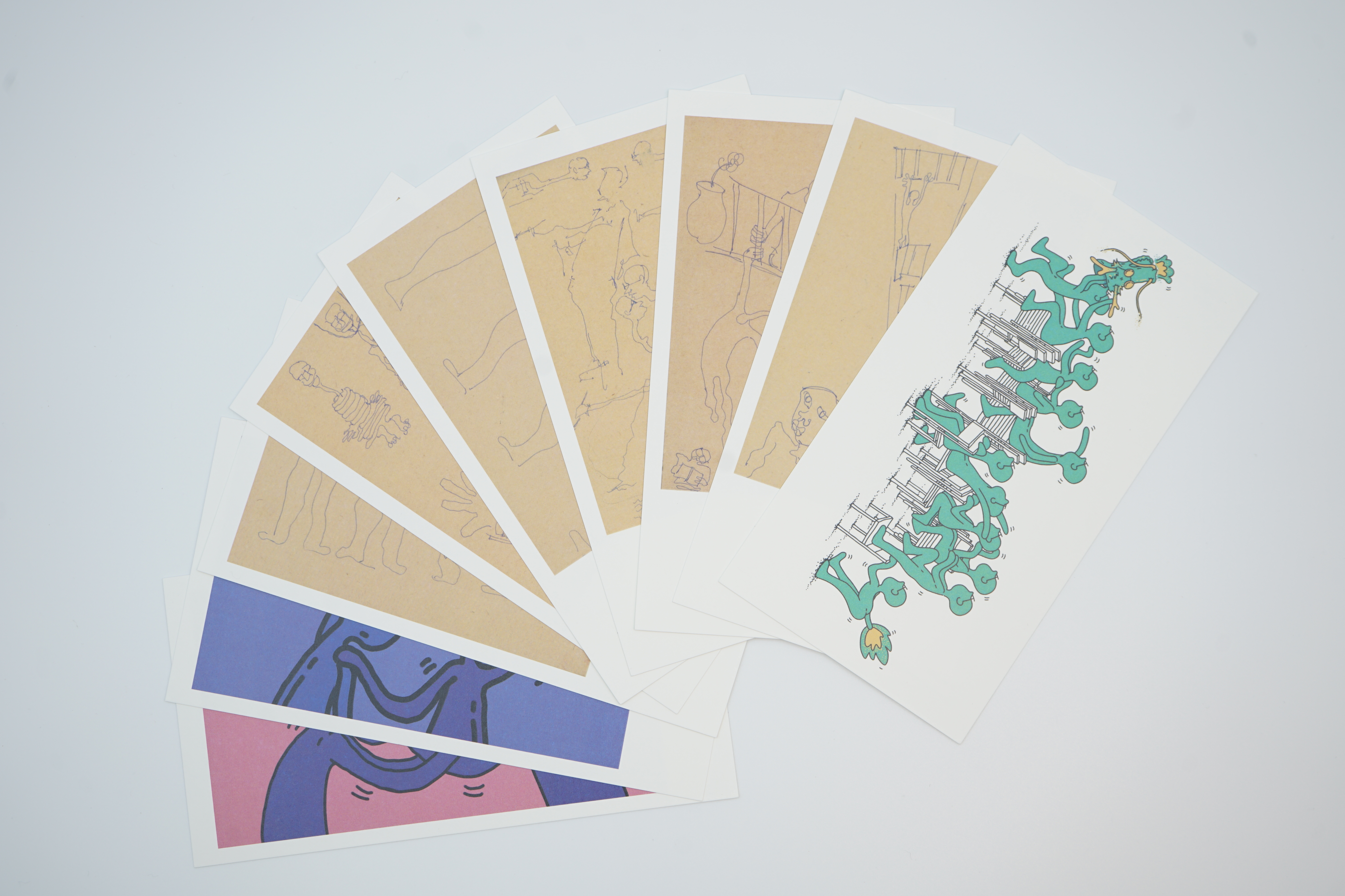 Postcards with manuscripts as the main pattern.